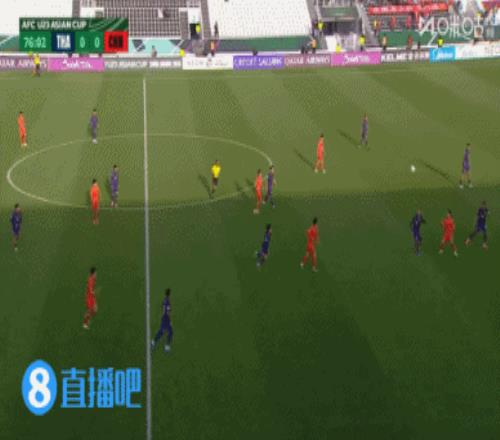 第58分钟,U23国足的反击机会,王钰栋直传,拜合拉木盘带到禁区,最后脚后跟回敲丢失球权。↓